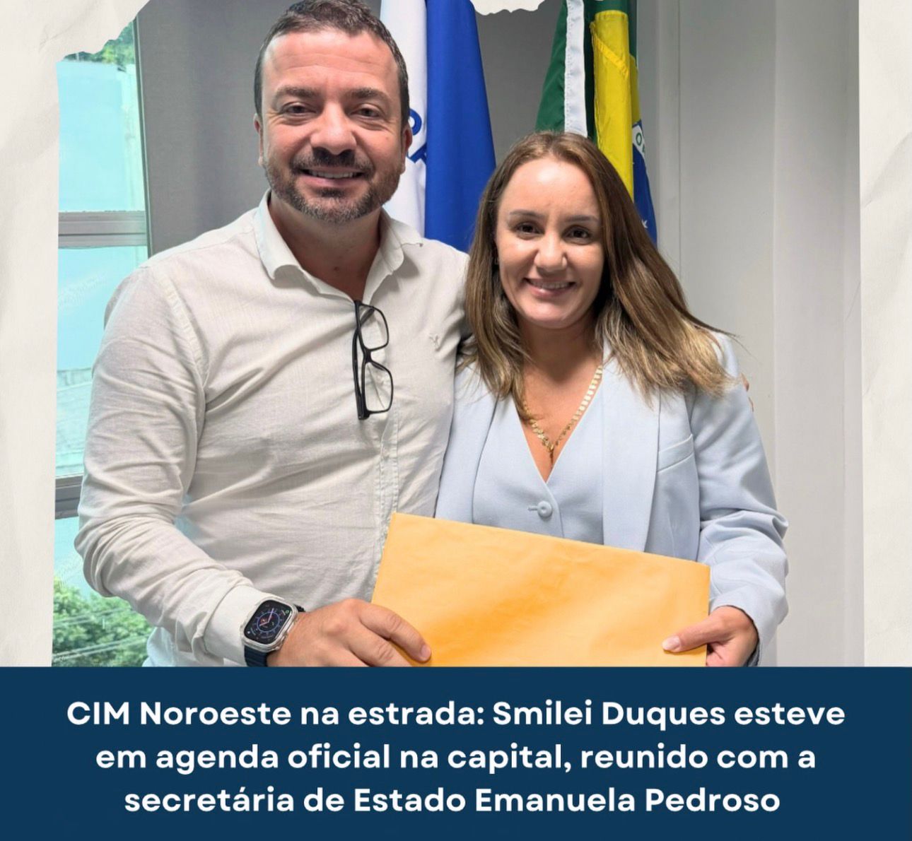 O Consórcio Público da Região Noroeste – CIM Noroeste segue avançando com trabalho, articulação institucional e foco em resultados. Nesta data, o superintendente Smilei Duques cumpriu agenda oficial na capital, onde se reuniu com a secretária de Estado Emanuela Pedroso para tratar de pautas essenciais ao fortalecimento do consórcio.